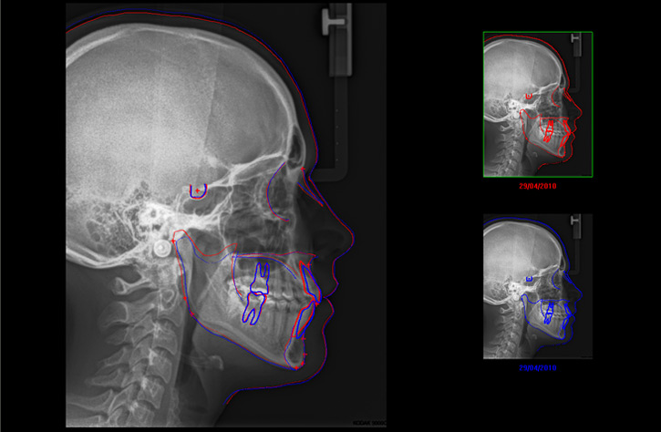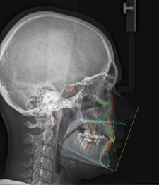 Cephalometric radiograph – an image used to gauge the cranial and facial bones. It allows to detect injuries or damages, diseases and dysmorphism within the area covered by the image. It shows soft tissues of the face, paranasal sinuses and hard palate. In orthodontic treatment it is used to assess the growth of the facial skeleton. What is more, a detailed analysis of these images helps to gauge the spatial relationships of the teeth, jaws and cranium. It is also indispensable to properly diagnose occlusal abnormalities and to plan proper treatment for individual patients. Comparing the image before and after the treatment allows to assess the treatment effectiveness. The image is indispensable to assess the progress in treatment of temporomandibular joints and relaxation of masseter muscles.